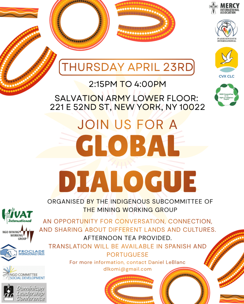 In 2026, the NGO Mining Working Group will have a presence at the Commission on the Status of Women (CSW), the Permanent Forum on Indigenous Issues (UNPFII), the High-Level Political Forum (HLPF), the UN Climate Change Conference (UNFCCC-COP31), and the UN Water Conference. Please contact us to coordinate events and actions during these conferences.